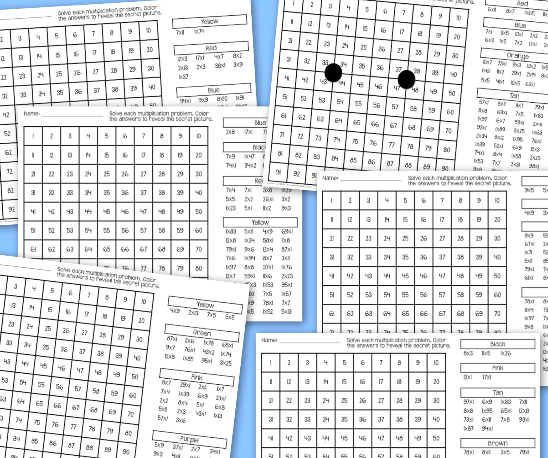 2-Digit by 2-Digit Multiplication Color-By-Number Math Mystery Pictures.